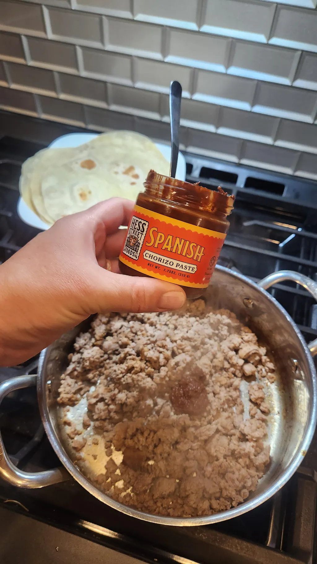 I had the pleasure of meeting the couple behind the brand at the Farmers’ Market. I bought a couple to feed a crowd during the holidays. Everyone RAVED about so I ordered 6 more jars to share. The taste is perfect spices and it is less than 10 minutes to make! I had dinner made and still had plenty of time to relax and play games with my family. Thank you, Hess Foods, for such a delicious and fresh chorizo!